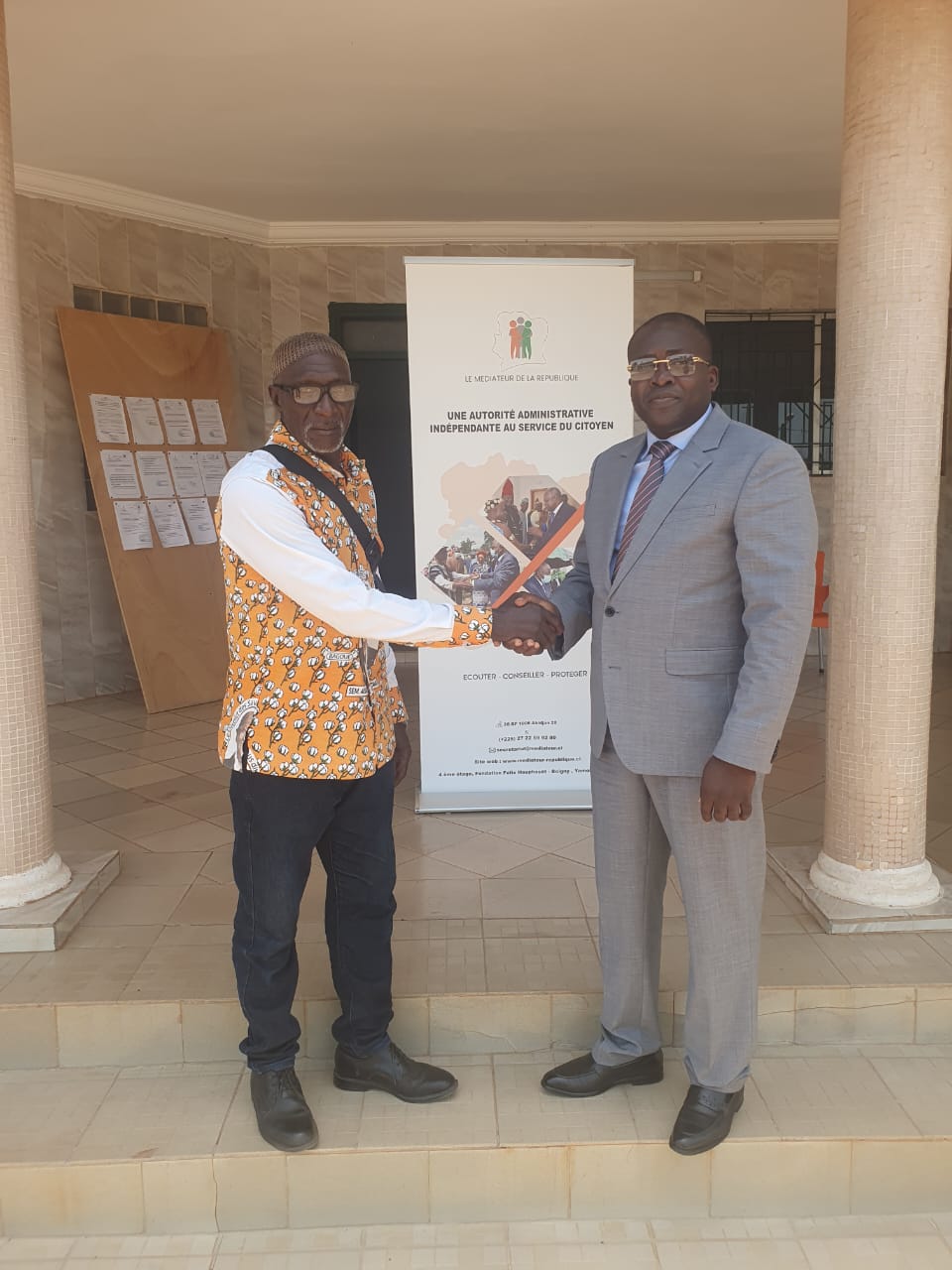 Le jeudi 16 avril 2026, le Médiateur Délégué de la région de la Bagoué a reçu en audience Monsieur Tiègbè Fofana, accompagné d’une délégation de ressortissants du village de Niempurgué, dans la sous-préfecture de Ganaoni, dans le cadre du différend lié à la désignation du chef de village.